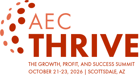 Announcing the return of AEC THRIVE, the premier growth and profitability summit for architecture, engineering, and construction industry leaders. Join key decision makers for powerful connection and collaboration on the business management strategies that drive lasting success.