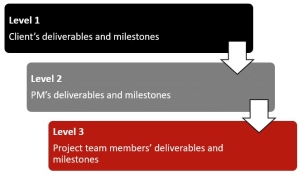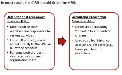 The work breakdown structure is a breakdown of that scope in the form of a task outline. The organizational breakdown structure defines who is responsible for each task. The accounting breakdown structure determines how you will collect the costs on the project.